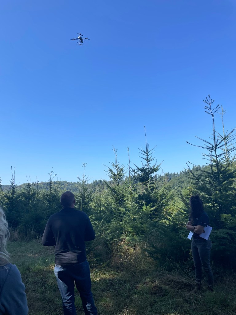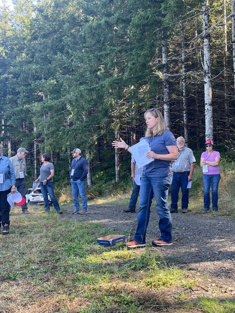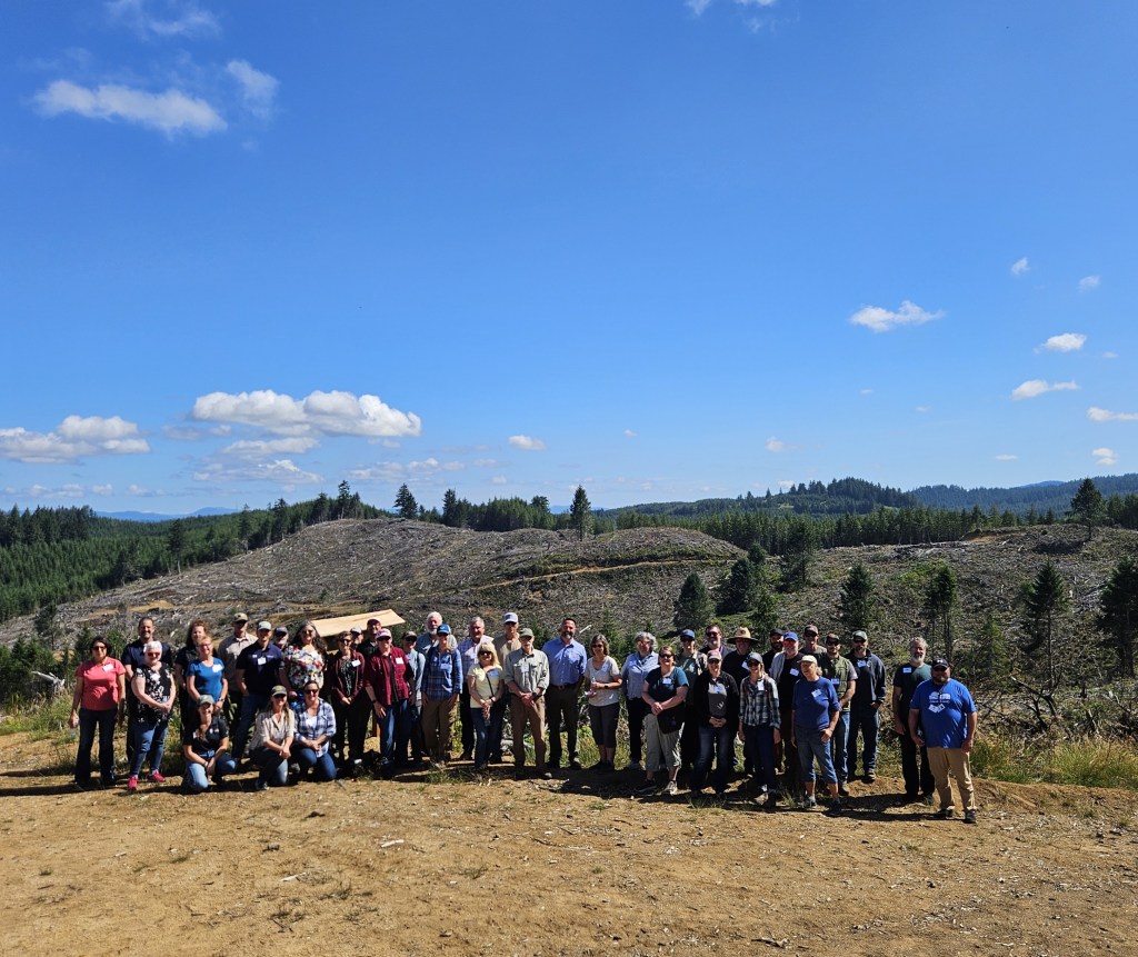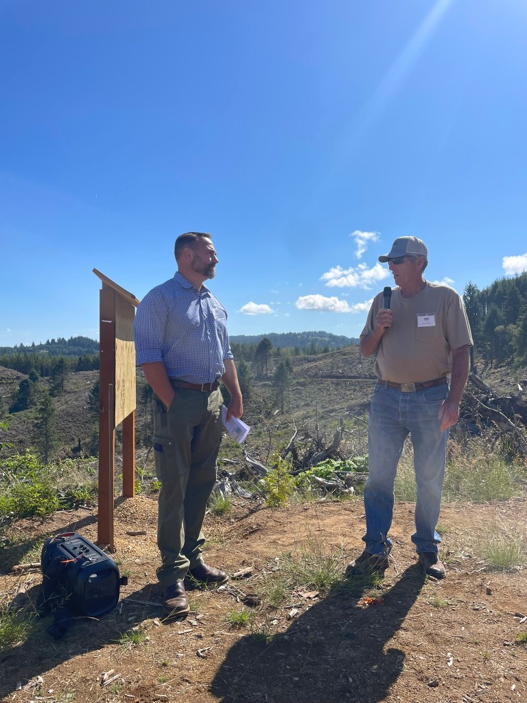 For the next stop, the group traveled up in the hills to tour a timber site managed by Manulife Investment Management. Jake Theimens, the Western Oregon Silviculture Manager for Manulife, explained the history of the timber unit and how it is being managed sustainably for timber products, habitat and recreation.