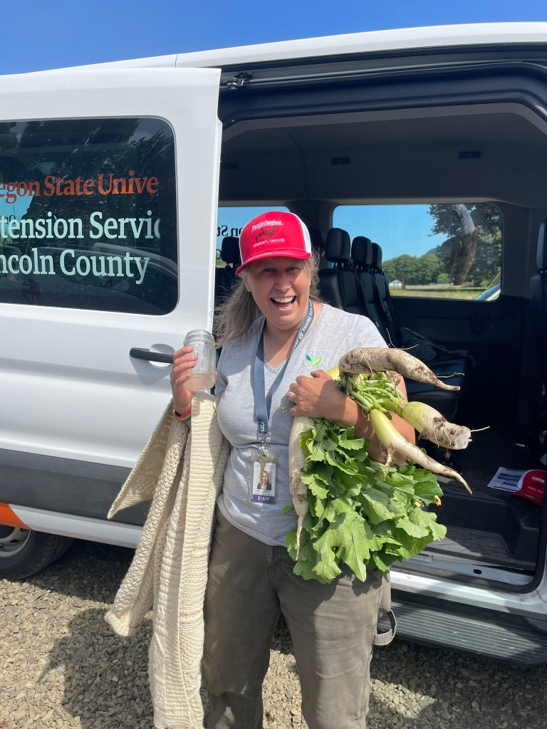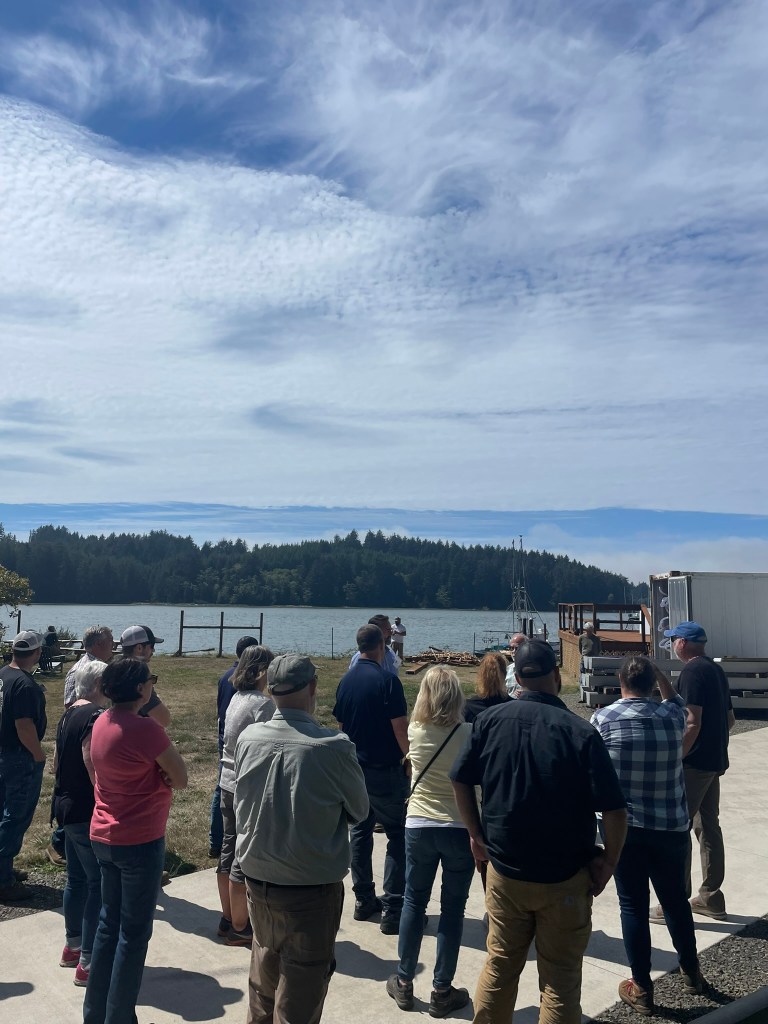 For lunch the tour group stopped at the Beaver Creek natural area and indulged in some amazing food prepared by Fish Mongers, a “boat to table” food truck based out of Waldport. Lastly, our group was fortunate enough to visit the Yaquina Lab at the Central Coast Food Web on the Yaquina Bay.